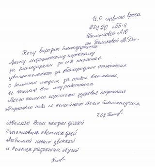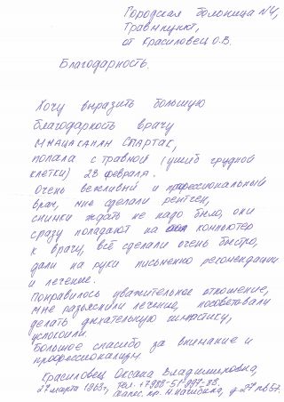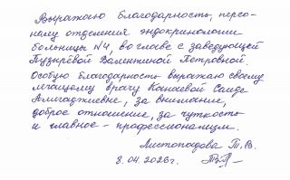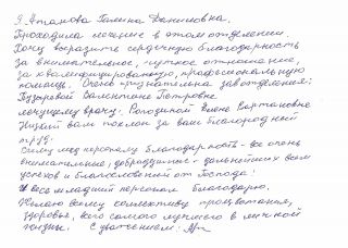 Михайл 30летВыражаю искрению благодарность хирургу поликлиники Тохунц Э.Э за доброе отношение высокий профессионализм большое спасибо!